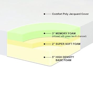 Memory foam provides a great sleeping surface. In normal temperatures it is somewhat firm, but when you lay down , it starts reacting to the temperature of your body and begins to mold itself to your shape. Then, weight is evenly distributed along the surface, relieving pressure points and helping you to sleep more without tossing and turning. MATTRESS FACTS: 10" Deep Dual Layers: 3"MEMORY FOAM + 2" Super soft foam + 5" base HD foam. Rich White Poly-Jacquard fabric cover .10-Year Warranty
